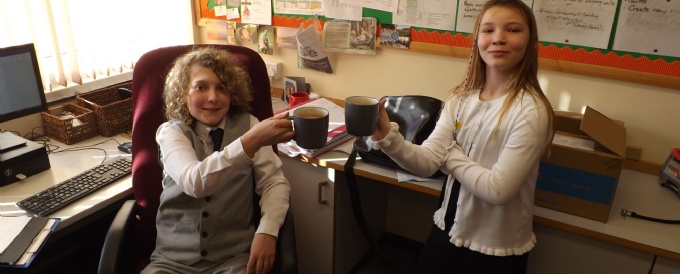 Barton Headteachers for the Day enjoy a well-earned cup of tea!